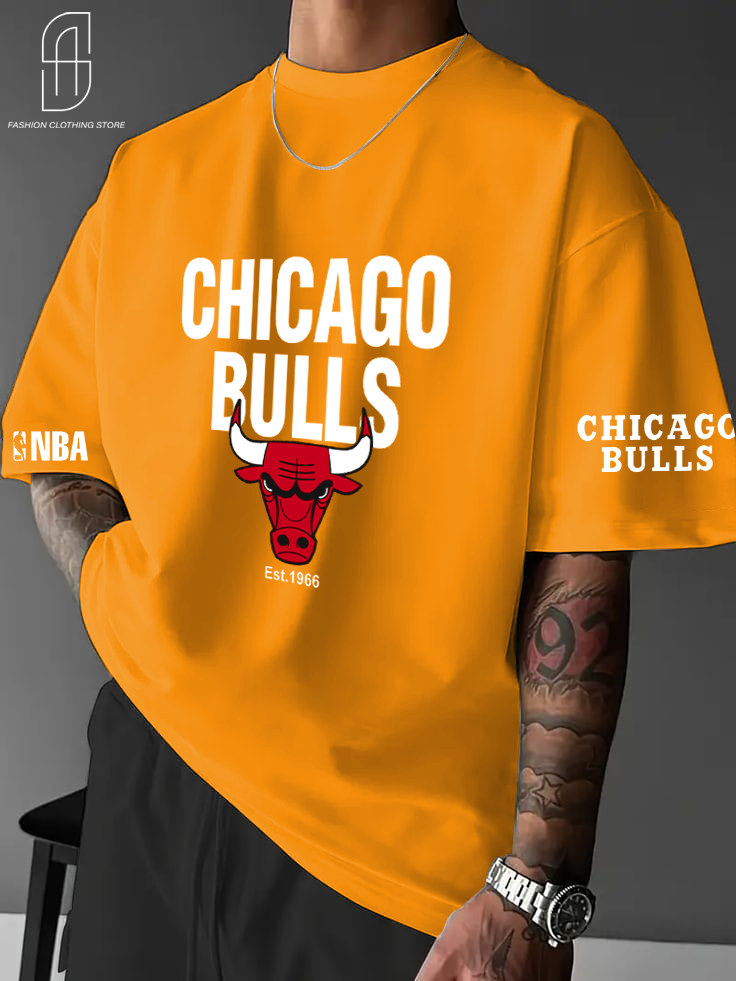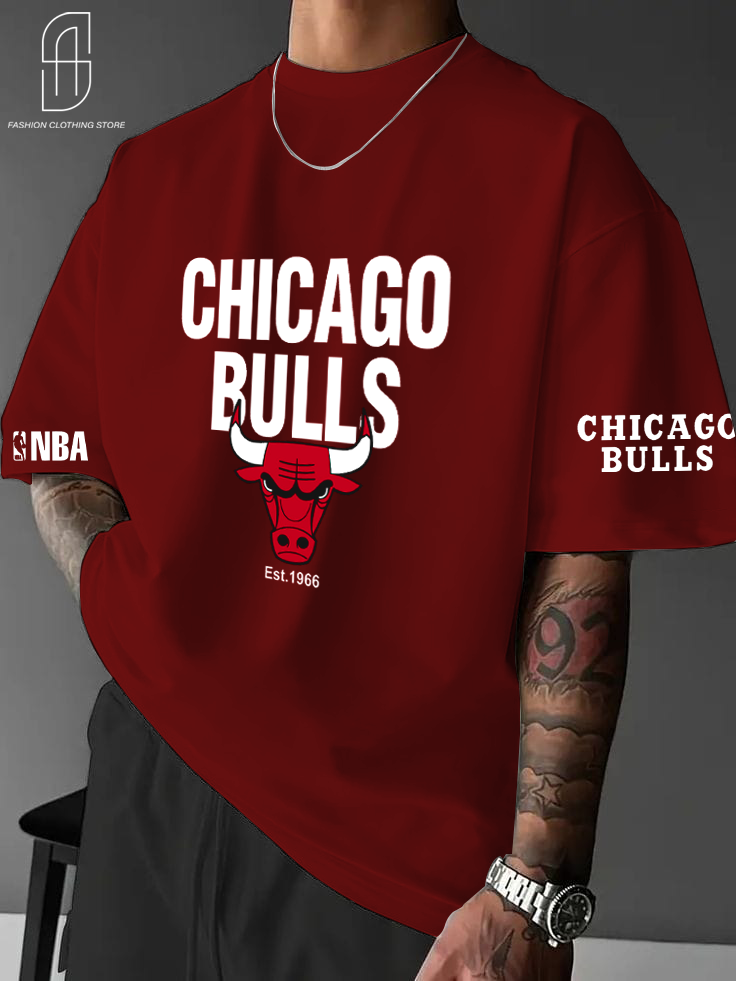 DROP SHOUILDER CHICAGO BULLS PRINTED T.SHIRT FOR MENS AND BOYS CASUAL WEAR.