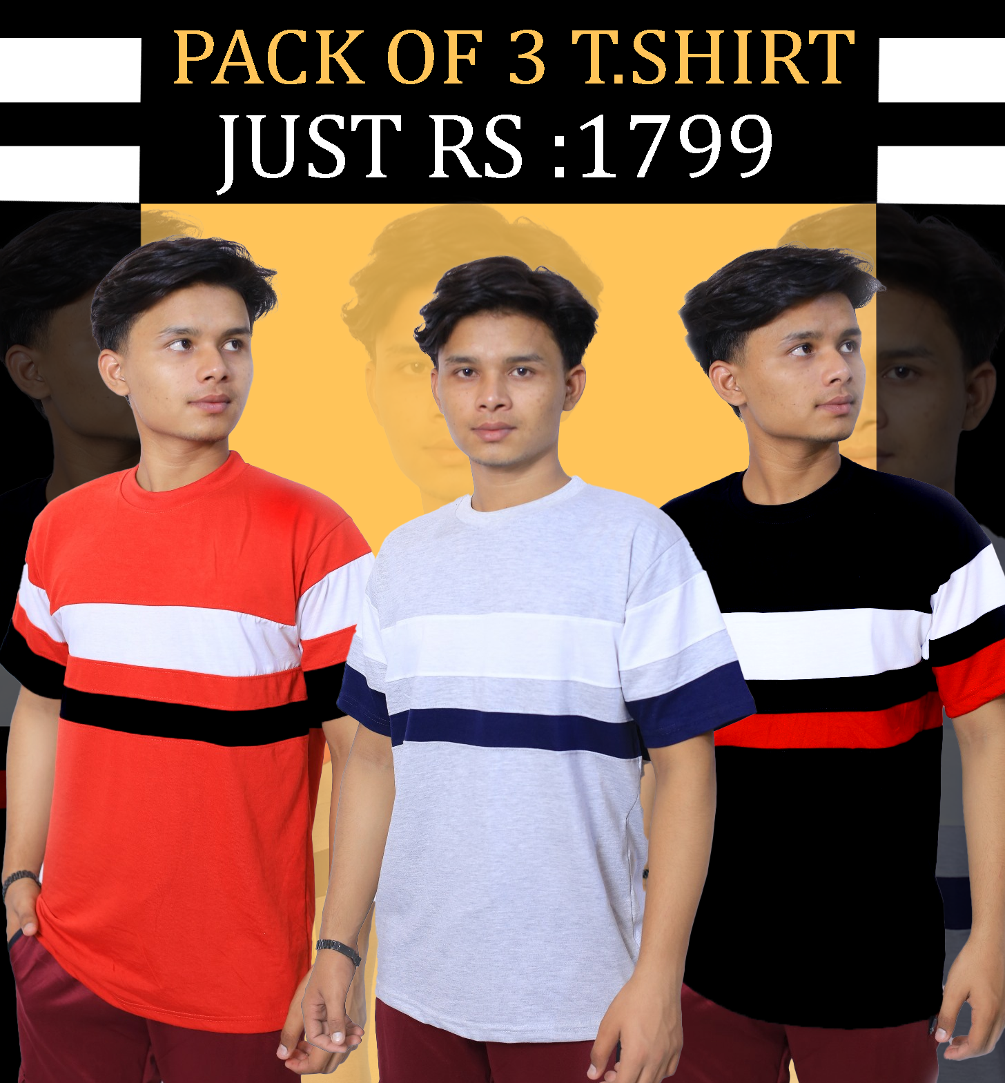 PACK OF 3 STYLISH T-SHIRT FOR MENS AND BOYS CASUAL WEAR.